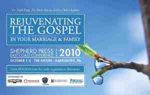 Biblical Seminary is co-sponsor of a Marriage and Family conference in Harrisburg, PA run by Shepherd Press Authors. The conference runs October 1-2, 2010. You can find out more information here. I tell you about our sponsorship because those of you associated with Biblical Seminary (friend, alum, student, etc.) are eligible for a discount. Using their website, http://www.SPA2010.com, enter BIBLICAL as a code to receive the discounted registration.